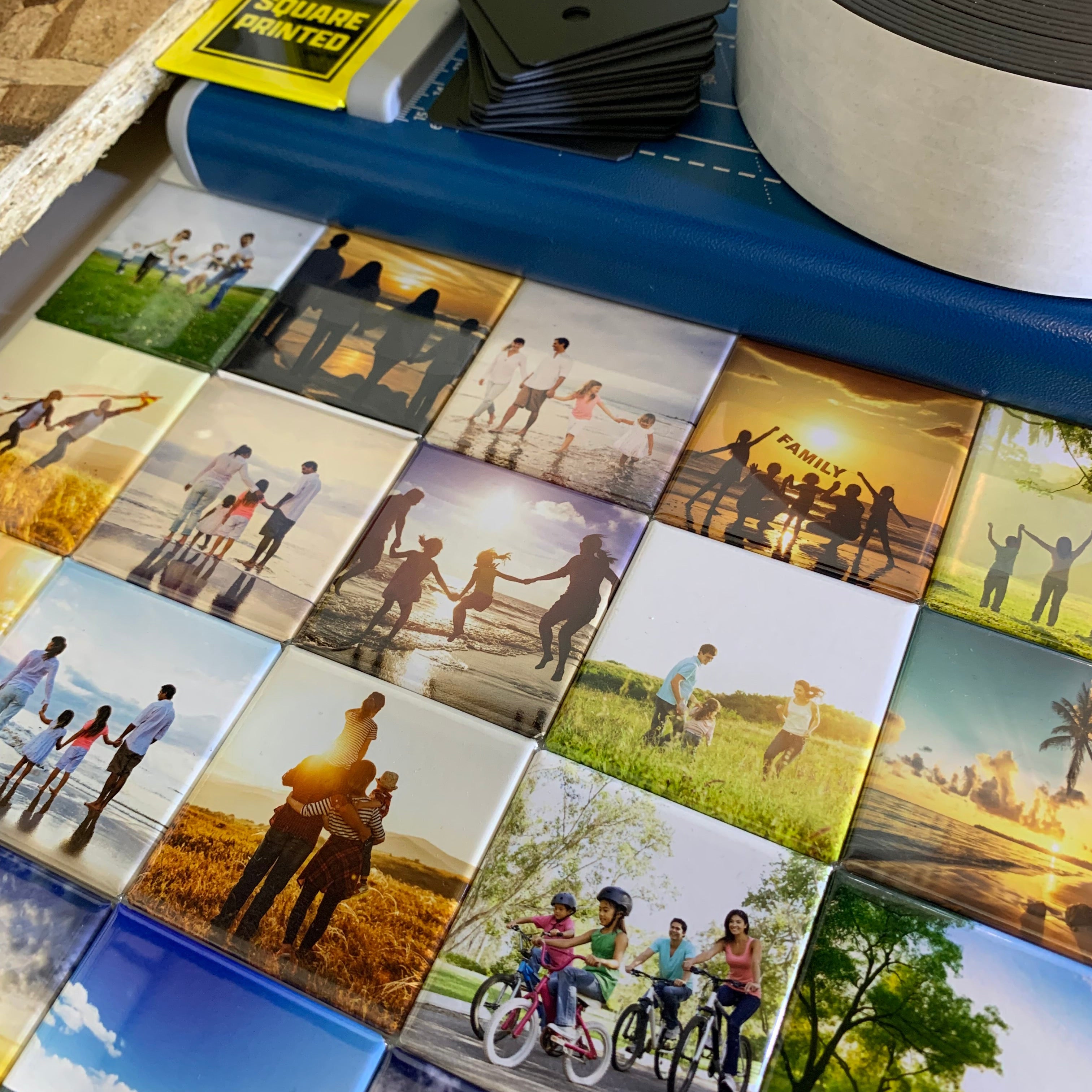 High-quality square photo magnets.